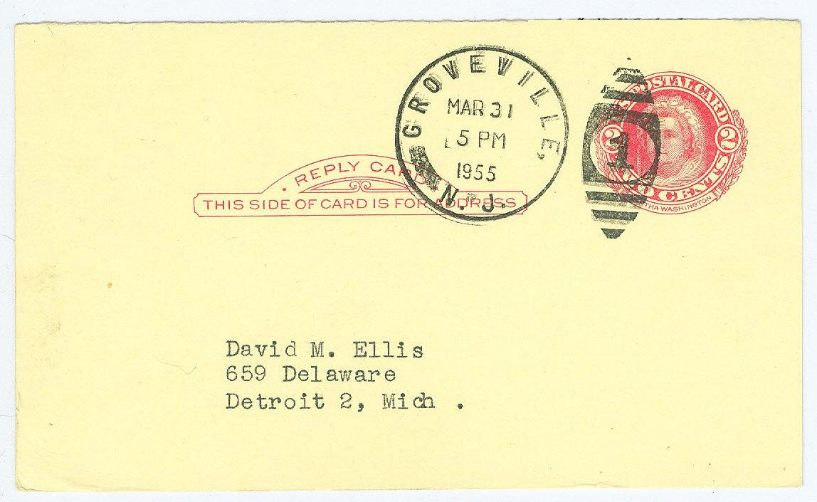 I just obtained these Post Cards. These post card were mailed from the Groveville and Yardville Post Office's on the last day they were independent Post Offices, after this date they were Trenton Branch Post Offices.